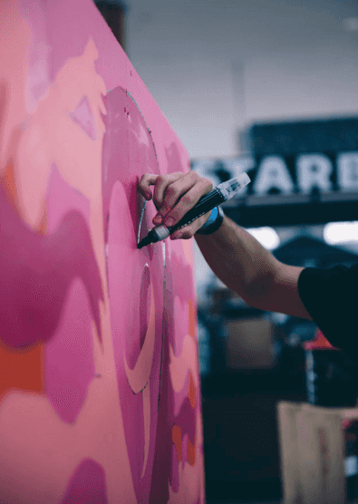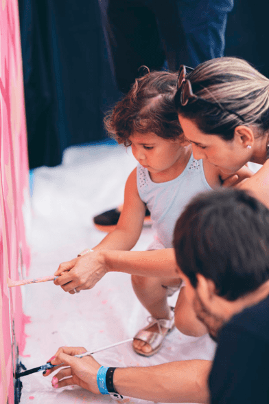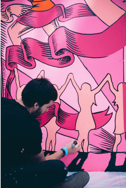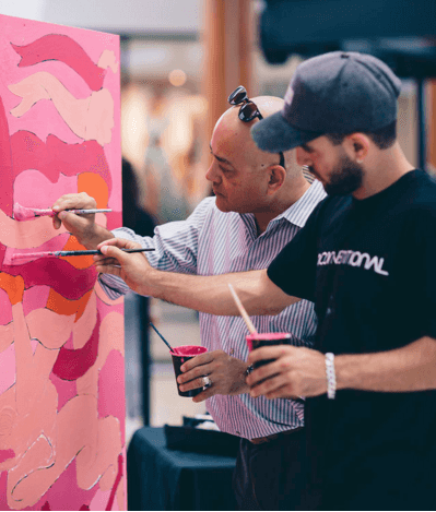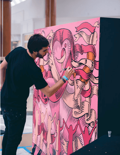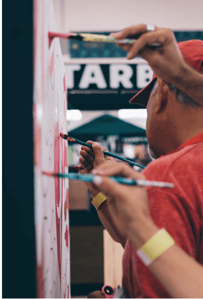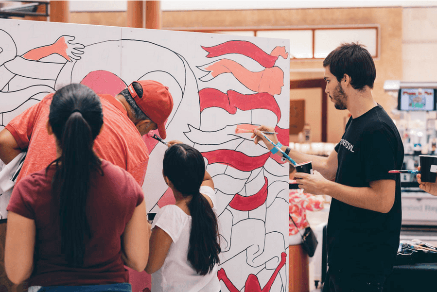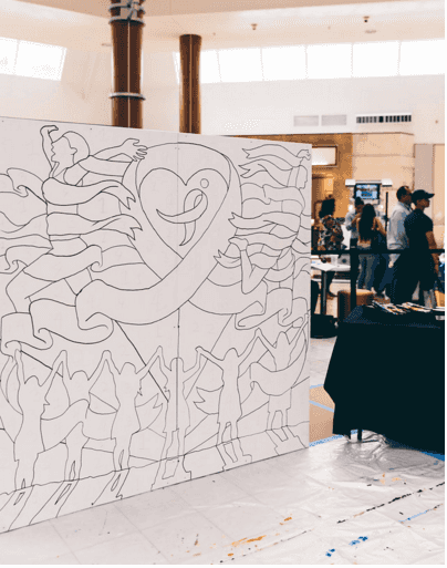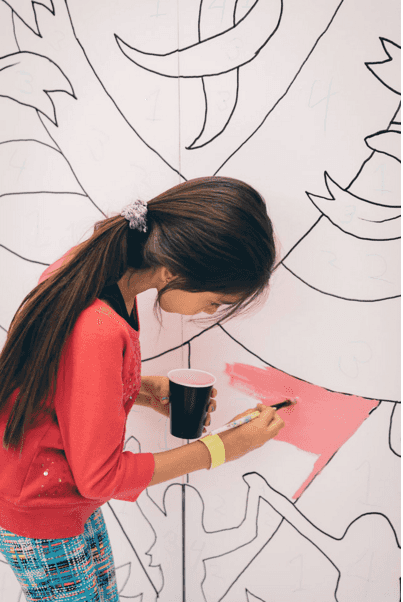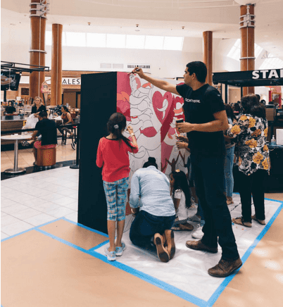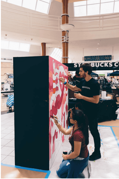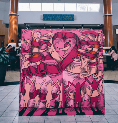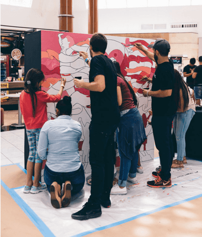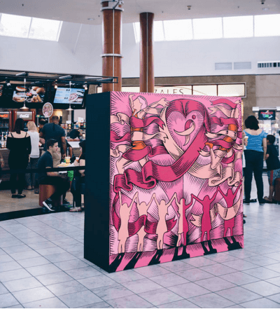 Paint by number interactive mural, designed for Susan G. Komen Breast cancer organization at Miami international mall. The piece represents the resilience and strength women display when battling breast cancer. Painted by the public with guidance from Marlon Pruz, then artist added their finishing touches.